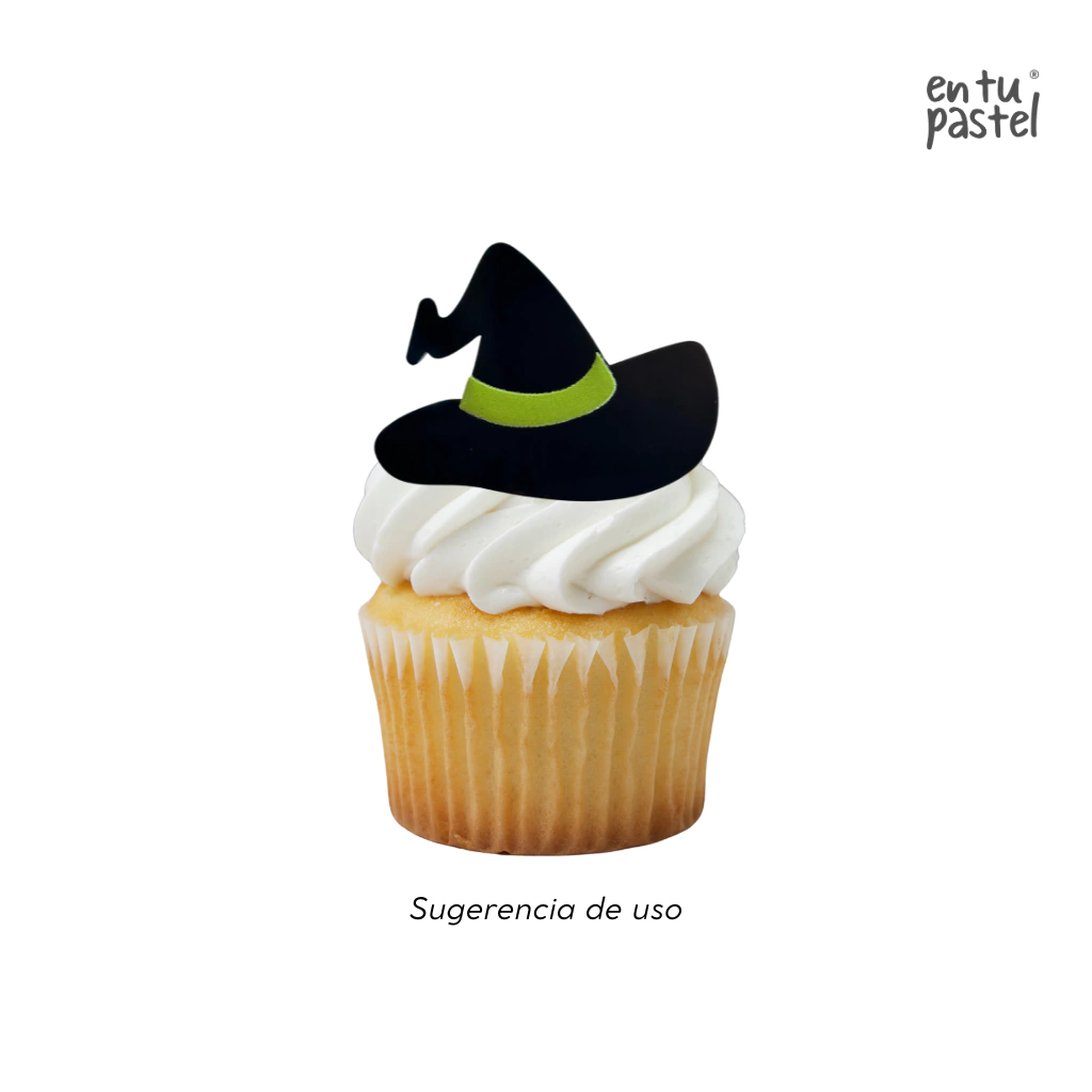 Añade un toque mágico a tus cupcakes o decoraciones con estos encantadores gorritos de bruja. Hechos en acrílico negro, puedes elegir entre dos variantes: con cintilla naranja o cintilla lila. Perfectos para dar un detalle especial a tus creaciones o como complemento decorativo en tus fiestas de Halloween.