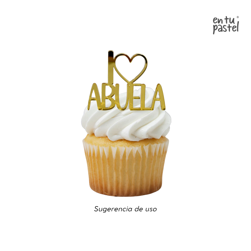 Celebra al abuelo más especial con este elegante minitopper o charm con la frase “I ♥ Abuela”, fabricado en acrílico espejo dorado de 3mm de grosor. Ideal para darle un toque sofisticado y lleno de cariño a tus detalles y celebraciones.